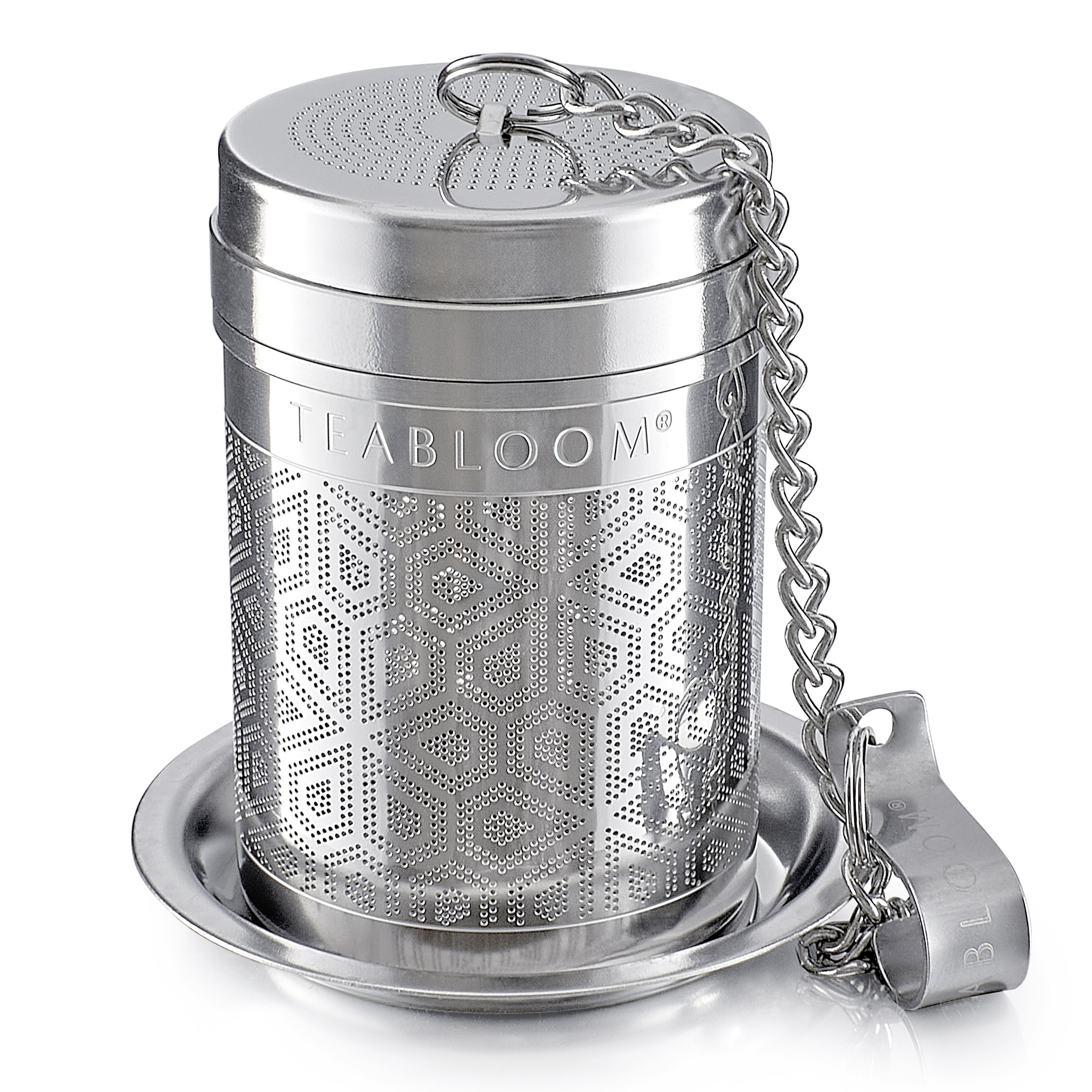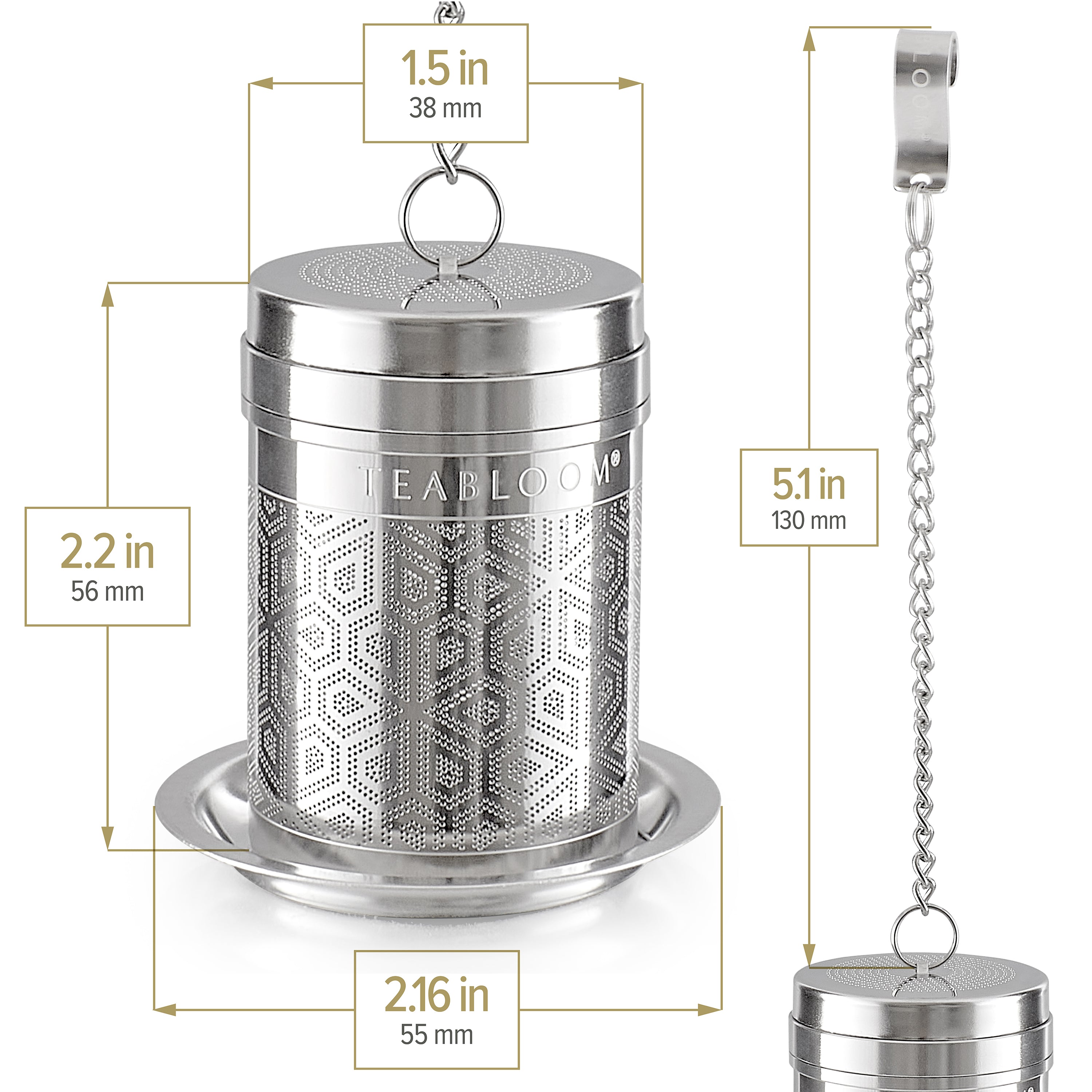 The stainless steel loose-leaf tea infuser includes a matching saucer to keep your surface clean. Choose from small or large sizes and use this amazing infuser for tea, coffee, and herbal infusions. This multi-functional design is also a spice infuser for sauces, soups, and stews.
